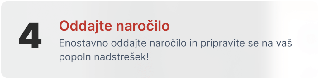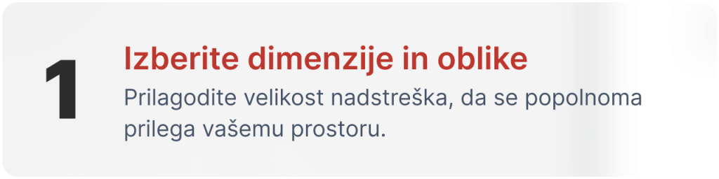 Vsak nadstrešek je skrbno načrtovan in izdelan z najvišjo mero pozornosti do detajlov. Zavezani smo h kakovosti, funkcionalnosti, estetiki in uporabi visokokakovostnih materialov, ki omogočajo dolgo življenjsko dobo in minimalno vzdrževanje.